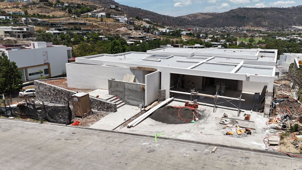 La casa, ubicada en un terreno irregular, aprovecha al máximo las vistas desde la planta alta, que se pueden disfrutar desde la sala, comedor y cocina. Su fachada destaca por el uso de piedra "oreja de elefante" en un muro bajo que rodea toda la propiedad, proporcionando carácter y conexión con el entorno natural. Unas escaleras exteriores llevan al sótano, desde donde se accede al jardín y a las recámaras secundarias.