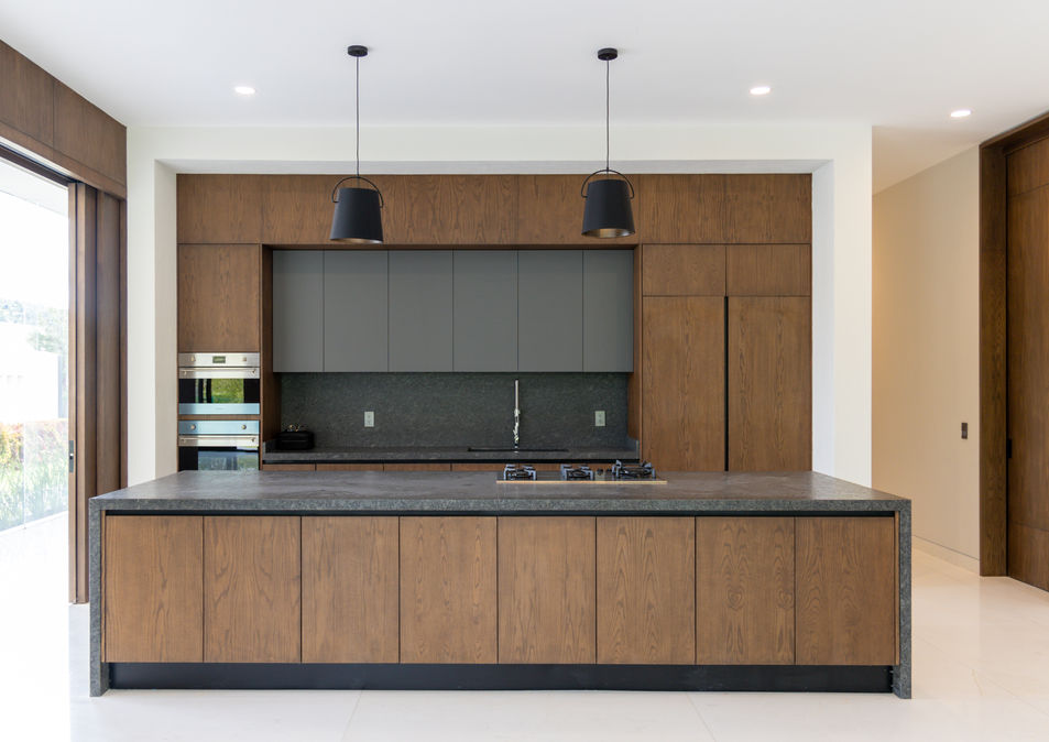 El interior, con doble altura y juegos de luz, distribuye las áreas públicas y privadas. En planta baja, sala, comedor y cocina se abren al jardín y parque. Una segunda escalera lleva a la oficina y gimnasio con vistas panorámicas. En planta alta, las recámaras, incluyendo la principal con terraza y baño exterior, completan el diseño natural y acogedor.